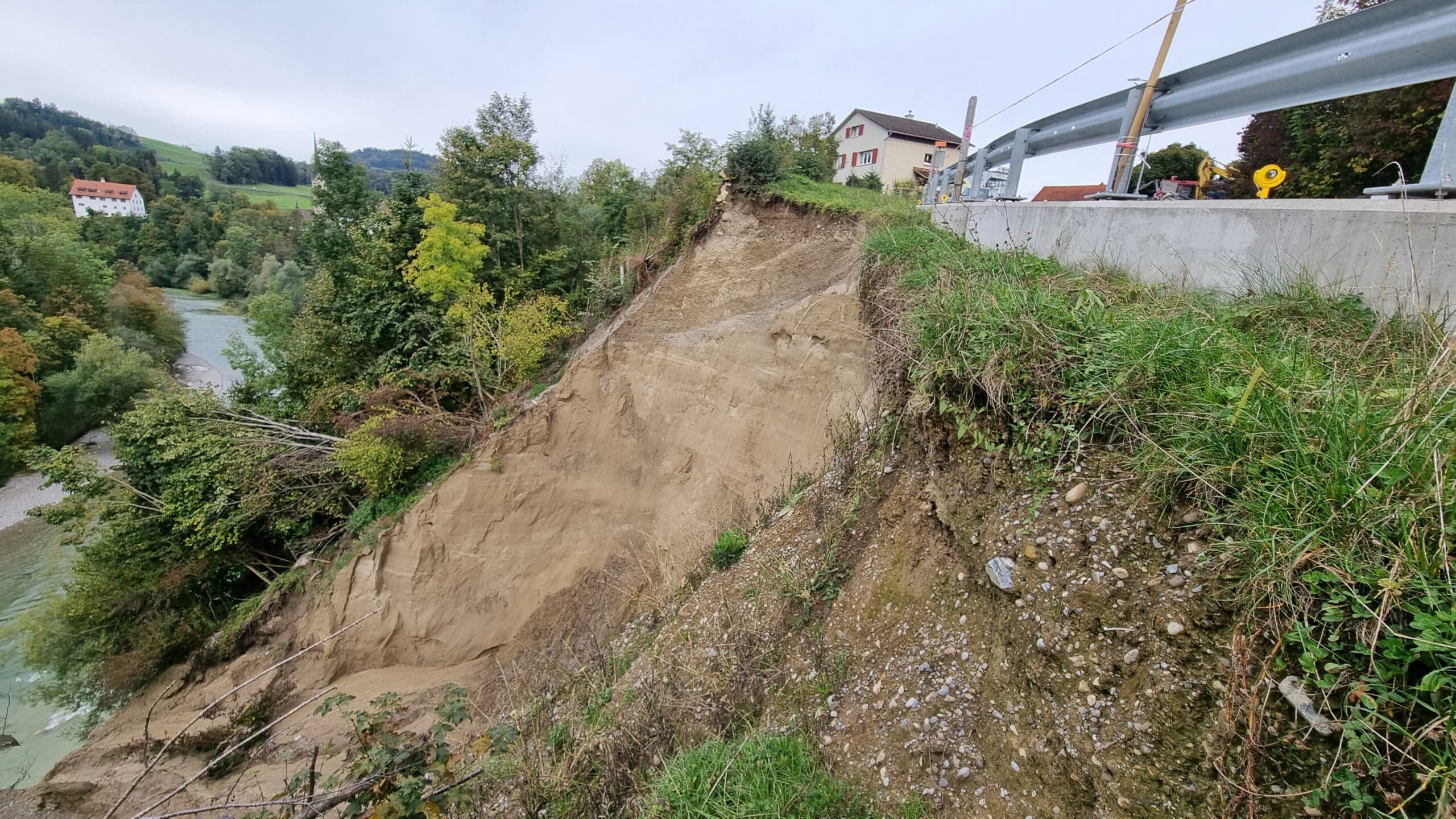 Seit dem 14. September 2024 ist die Letzistrasse zwischen Lütisburg und Ganterschwil für den Verkehr gesperrt. Grund dafür ist ein massiver Hangrutsch unter der Strasse in die Thur.